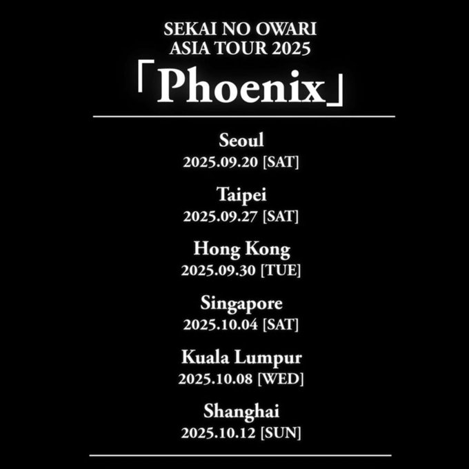 세카이노오와리 내한 [2025년 9월 20일(토)] (Sekai No Owari Phoenix 2025) + 참고 셋리 포함